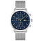 Saatin mavi renkli kadranı, metalik kordon ve kasa ile mükemmel bir uyum içindedir. Mineral cam, kadranı çizilmelere karşı korurken, saatin pilli (Quartz) makinesi hassas zaman tutuşu sağlar.